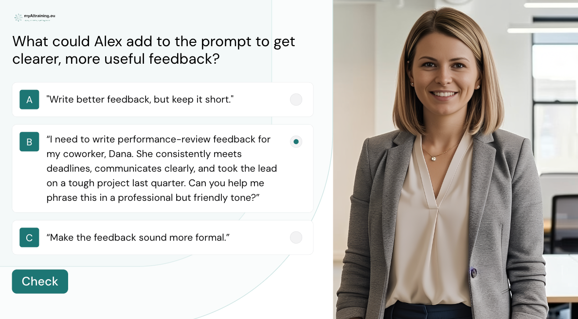 Our short, multilingual course delivers EU AI Act–compliant AI Literacy through personalised learning paths tailored to each learner’s role and how they interact with AI at work and in daily life.